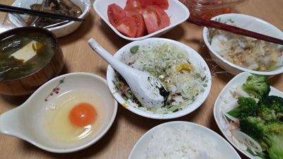 ハムエッグとコロッケと手料理