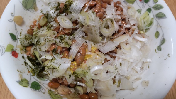 納豆にネギが多すぎるように見えますが・・・