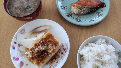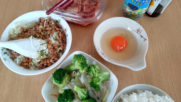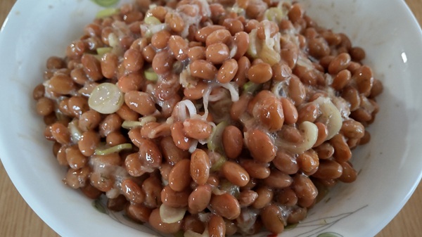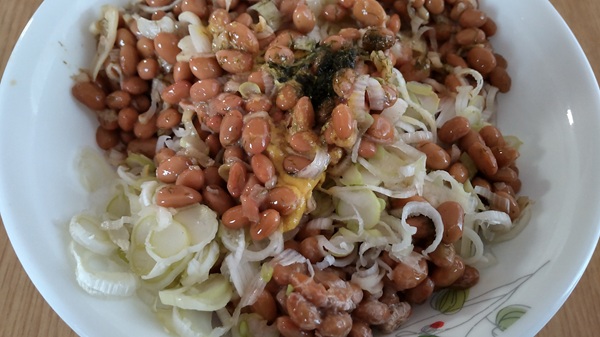 新規の納豆にネギを乗せてその上に前日の残りネギ納豆をトッピングしたと思しきもの