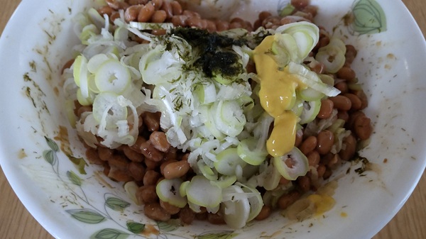 納豆にネギが多すぎるように見えますが・・・