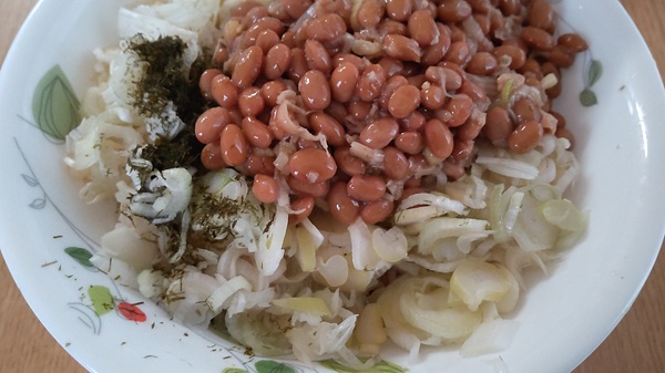ネギが下にあるタイプ。体感的に納豆とネギが同量。