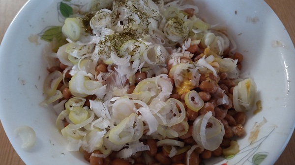 納豆にネギが多すぎるように見えますが・・・