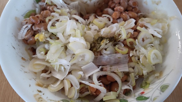 納豆にネギが多すぎるように見えますが・・・