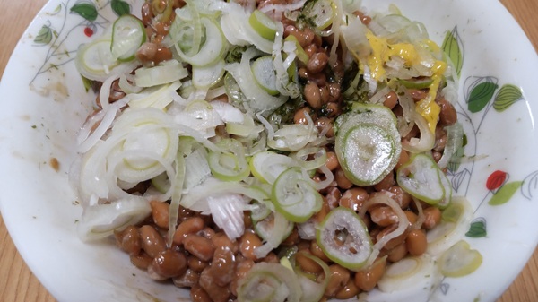 残ったネギ納豆に新規のネギ納豆を追加投入したものと思われますが・・・