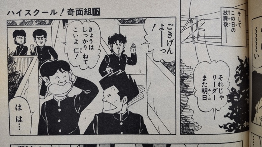 本筋とまるっきしカンケーないけど、この回、奇面組の5人が住宅街の四つ角で別れるシーンが、なんか印象的。