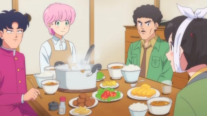 いずれにせよ、旧作でも新作でも、原作に忠実に「ハムエッグとコロッケ」なのだ。こんな細部はべつに(旧作アニメにおいても)違う食べ物に置き換えてしまって全く問題ないように思われる。むしろ新作アニメにおいてはチェンジしてもらいたいような気さえする。こだわりがあるのか、何にも考えていないのか・・・(?)。