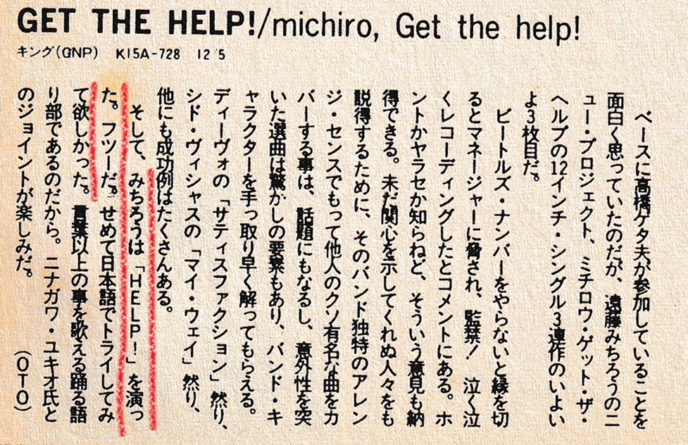 そこでふと、遠藤ミチロウがビートルズの「HELP!」をカヴァーしたときの話を思い出した。